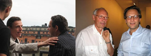 Left: Curator Daniel Birnbaum and Swedish Minister of Culture Leif Pagrotsky. Middle: Curator Rosa Martinez and MMK director Udo Kittelmann. Right: Moderna Museet director Lars Nittve and Magasin 3 director David Neuman.