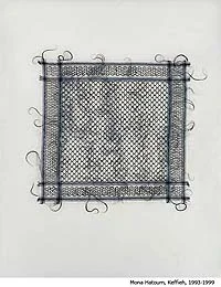 Dette verket, Keffieh, tydeliggjør noen viktige trekk ved Hatoums kunst. Det ene er hvor utrolig kontekstbasert hennes verk er, det andre hvor spesiell Hatoum er i forhold til mange andre kunstnere med lignende verker når det gjelder karrieremessig suksess, og det tredje dreier seg om hvorfor det blir så viktig å vite hvilken bakgrunn hun har, både politisk og kulturellt.