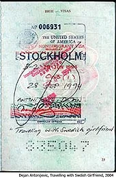 Noen av de mer lavmælte og interessante verkerne på utstillingen er signert Dejan Antonijevic. De lar besøkeren tenke selv og har befriende nok fått stå uten overforklarende tekster i utstillingen. I en side fra Antonijevic’s pass finnes et visum fra 1994 tilUSA der immigrantpolitiet har gjort et tillegg:Travelling with Swedish girlfriend. Dette er også tittelen på verket som består i en utskrift av passets side på MDF-plate. Skjulte strukturer og komplekse konstruksjoner er Antonijevic’ signum, og hans verk trenger en stund med stille kontemplasjon og ro.